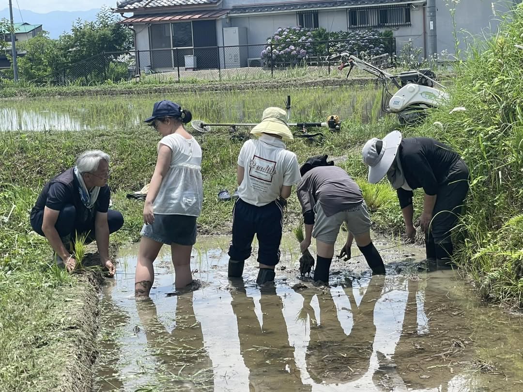 農薬も化学肥料も使わず、自然の力だけで育つ田んぼで、2枚の田んぼに苗を丁寧に植えました。