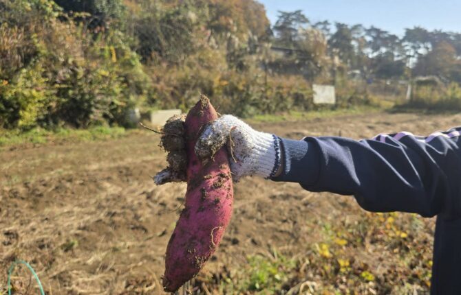 ぽかぽかと汗ばむほどの陽気の中、子どもたちは夢中でサツマイモを掘っていました。