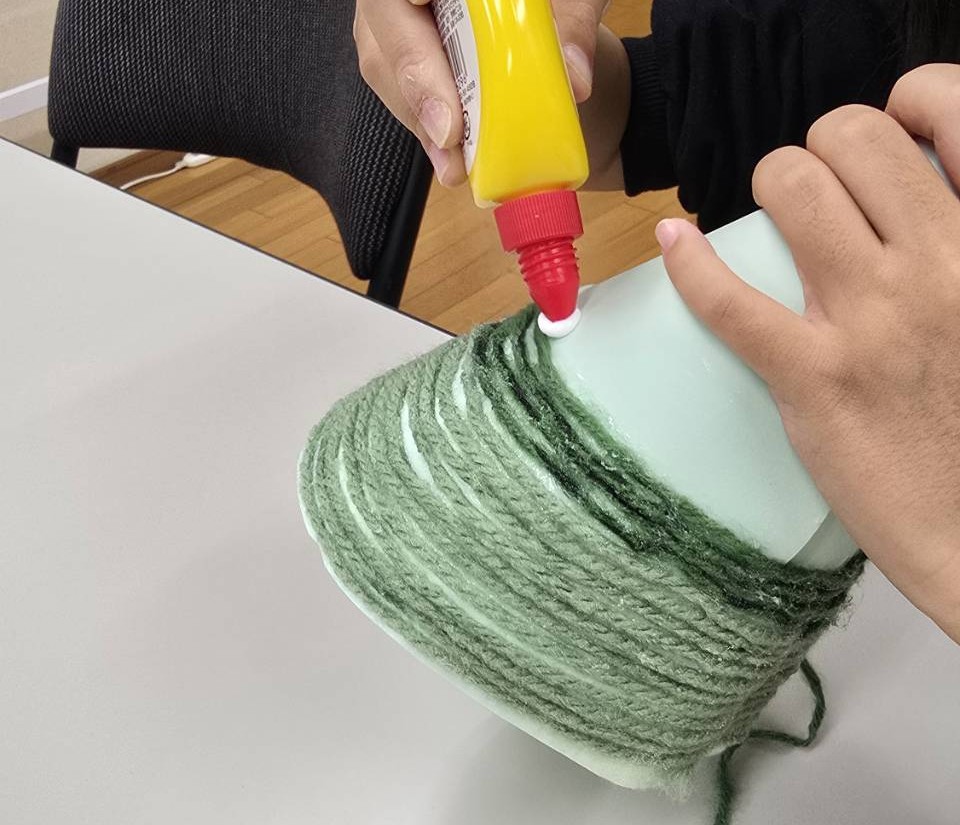 その上から緑の毛糸をくるくると巻きつけていきます。